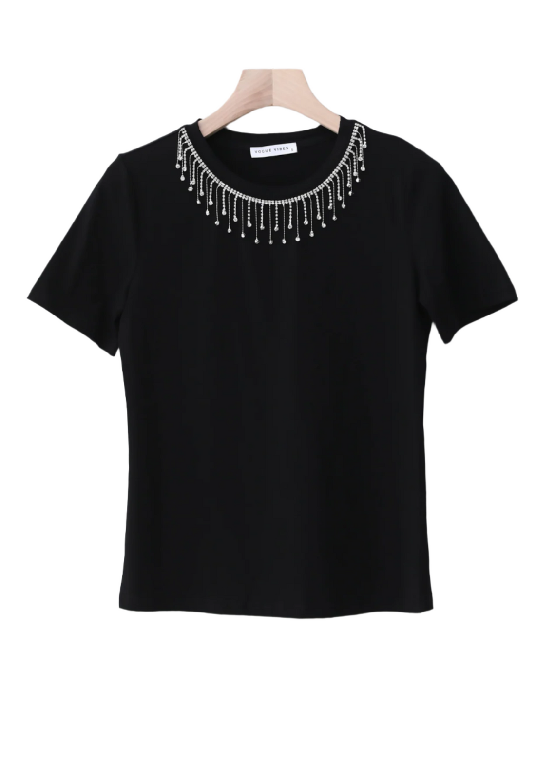 Introducing our elegant t-shirt, featuring a beautifully sewn-in diamond necklace that adds a touch of...