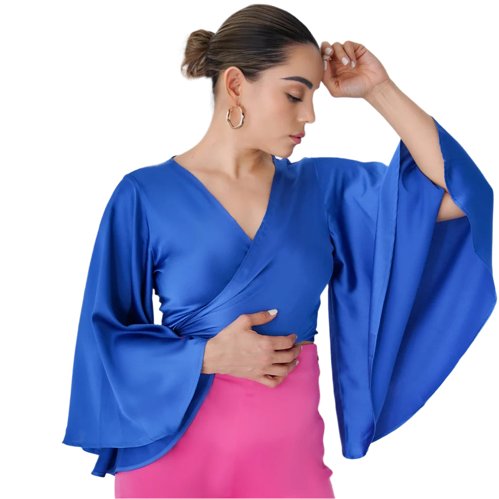 The Satin Kimono Sleeve Wrap Top