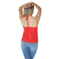 A Tie around is a blouse top with stains that can be tied around the neck. It has a l fit. you can tuck it or you can let it be.it features an open back p for any summer party