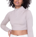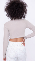 Cement High Neck Cropped top with half zip up and Thumb Holes