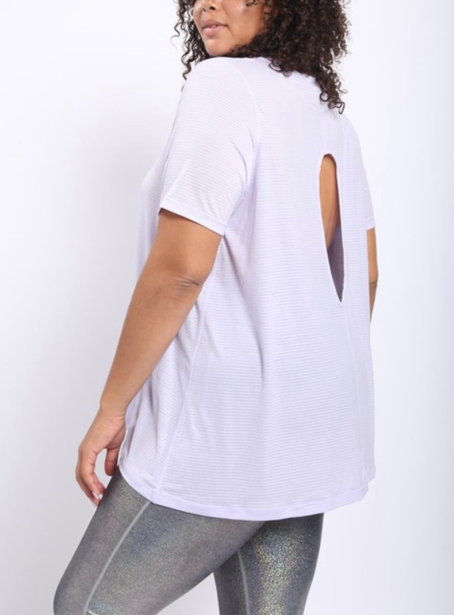 This longline top is perfect to layer over your activewear. The four-way stretch, striped mesh fabric gives coverage whilst keeping keeping you cool during your activities. The keyhole cutout on the back is both functional and flirty.