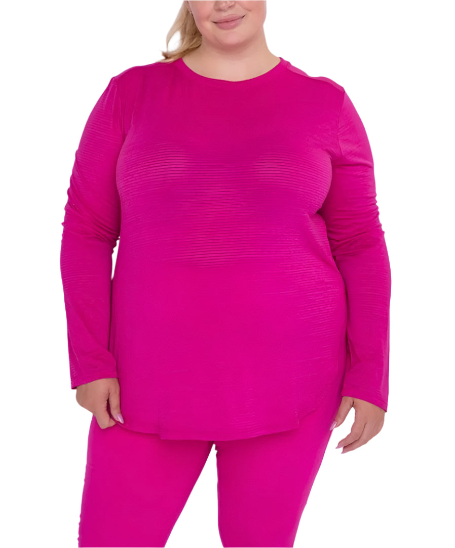 The Curvy Ribbed Mesh Long Sleeve Flow Top with Side Slits