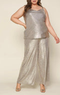 The Perfect Pullover Pants combine style and comfort effortlessly with their unique silver and gold effect finish. Designed for a flattering fit, these pants are easy to pull on and perfect for any occasion, whether dressing up or relaxing. The model wears size XL (1XL), showcasing a versatile fit that adapts to your shape. Elevate your wardrobe with these eye-catching pants that bring a touch of shimmer and sophistication to your everyday look.