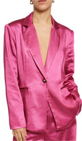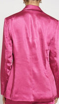 This fucsia satin blazer is the perfect addition to any wardrobe. It features a sleek, tailored silhouette and is constructed from satin fabric that drapes gracefully over the body. The single-button closure ensures an easy fit and its front pockets add a stylish touch. With its timeless design, this blazer will become your favorite go-to piece for both casual and formal occasions. Matches GSP1236 - Satin trousers