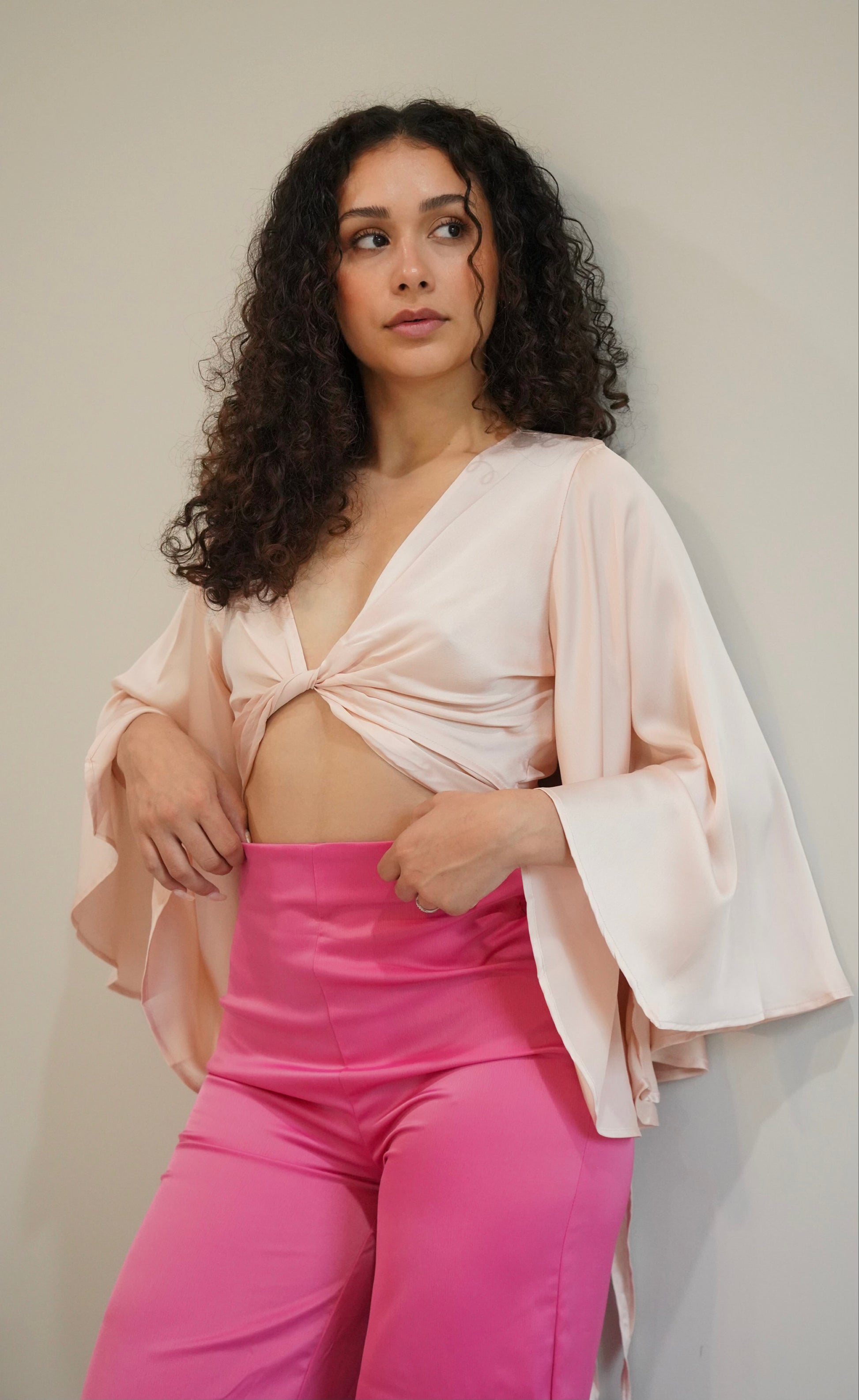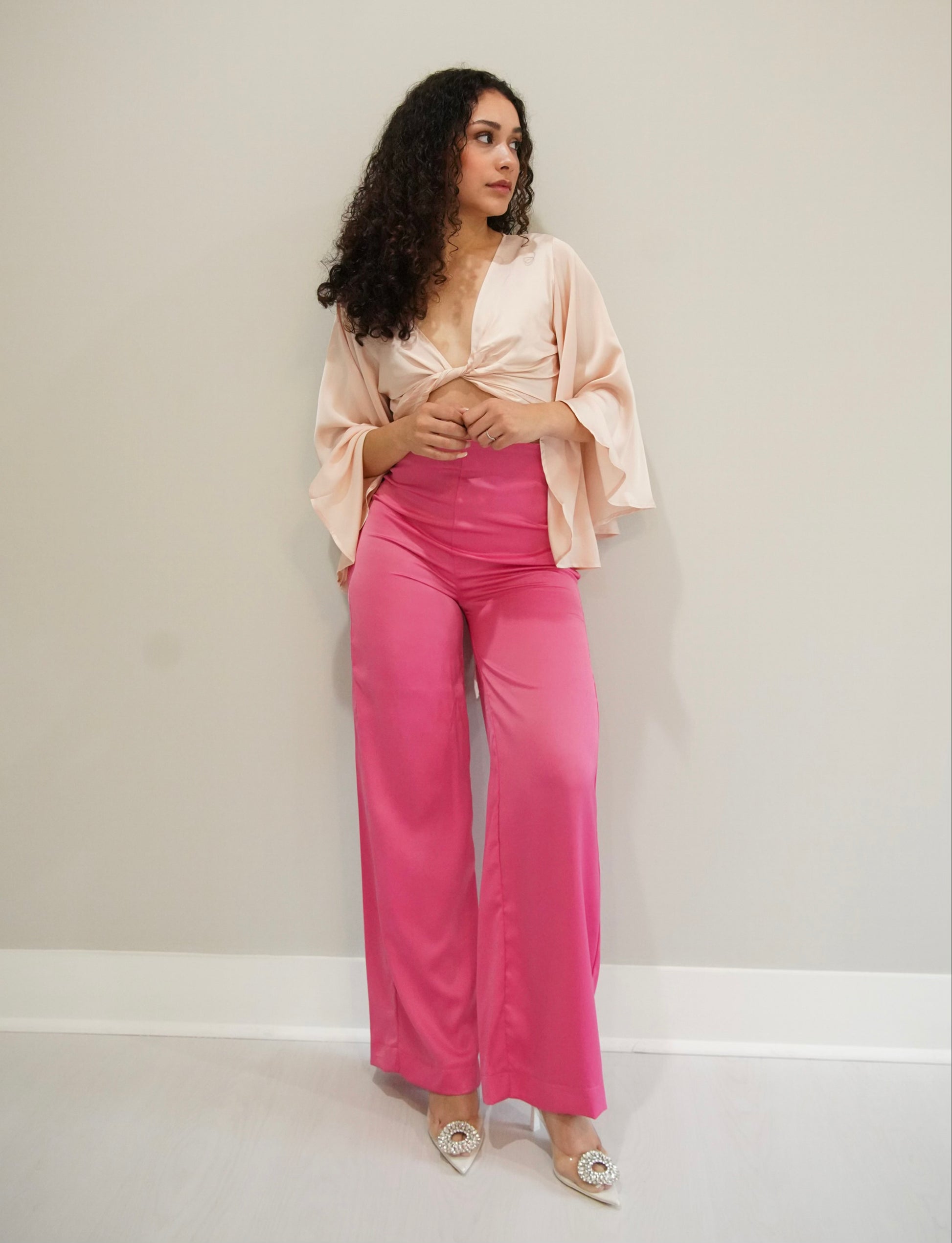 The Satin Kimono Sleeve Wrap Top