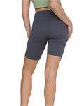 High-Waisted biker shorts are shorts with a high waistband that sits at or above the belly bottom, designed for physical activity, and made with stretchy comfortable fabric.