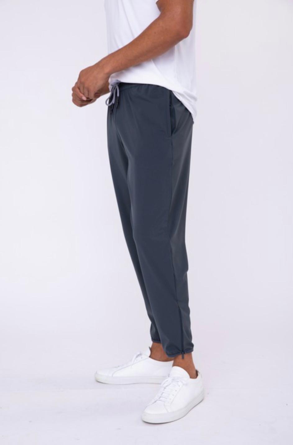These easy to wear joggers are made in a lightweight & durable graphene blend knit. A high waistband with a braided drawstring cord. The elasticized ankle with zip up detail offers increased mobility