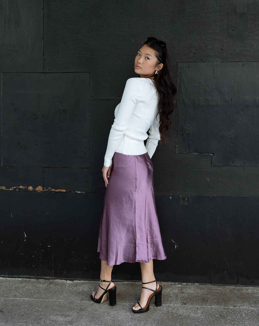 A mermaid silk skirt is a form-fitting skirt that flares out towards the bottom, resembling the tail of a mermaid. It is typically made of silk fabric, which gives it a luxurious and smooth texture.