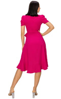This hi-low dress features a dramatic, flowing hemline, a flattering fitted bodice and waistline, and versatile styling options that work for a variety of dress codes. perfect for formal events or special occasions with a luxurious fabric and elegant design.